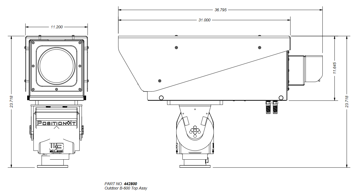 - Interior Dimensions of housing to camera mounting plate (28.5″ L x 8.5″ W x 9.25″ H)